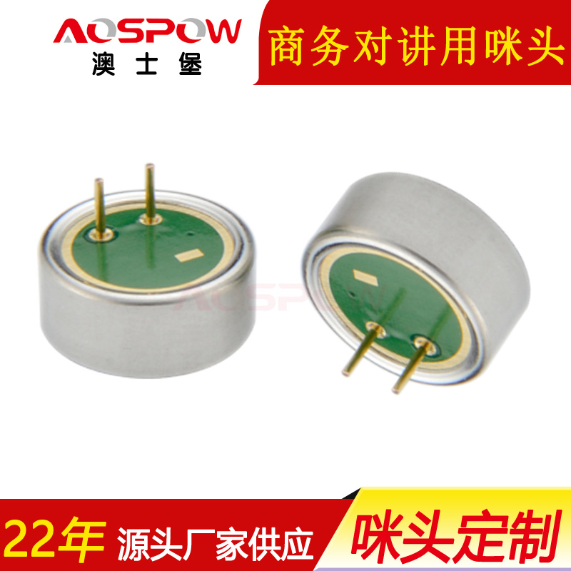 奧仕電子駐極體降噪咪頭廠家生產的9mm全指向插針咪芯,9745高靈敏咪頭內置雙電容抗干擾,采用韓國RF管芯,質量穩定可靠,應用于商務對講拾音設備等產品領域。