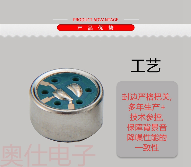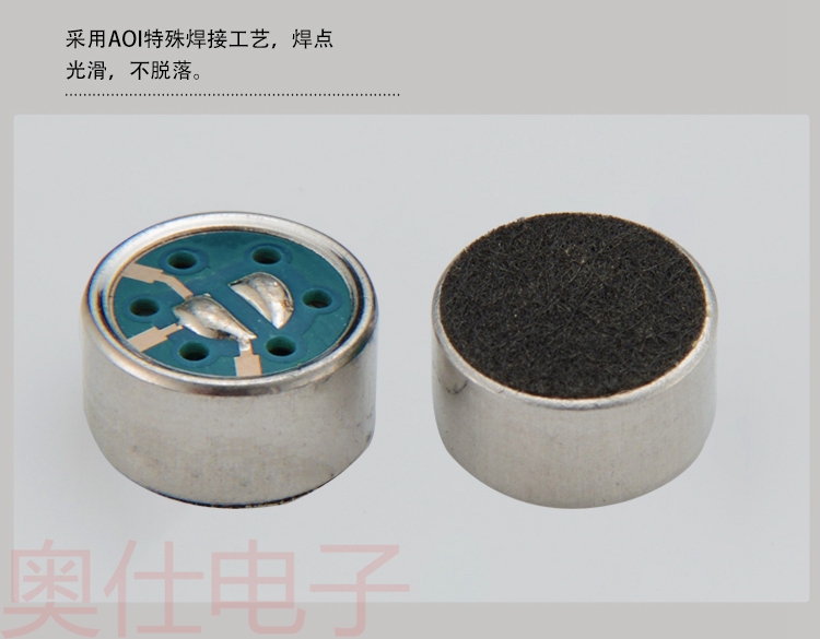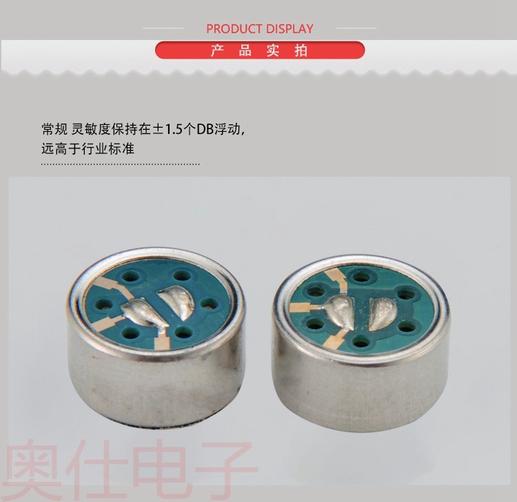 尺寸:9.7*5.0 單指向駐極體咪頭,內置雙電容,有效屏蔽射頻干擾信號,采用韓國RF管芯,質量穩定可靠,-38dB高靈敏度,還原度好,適用領夾麥克風,會議麥克風