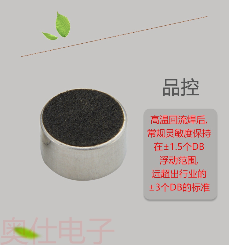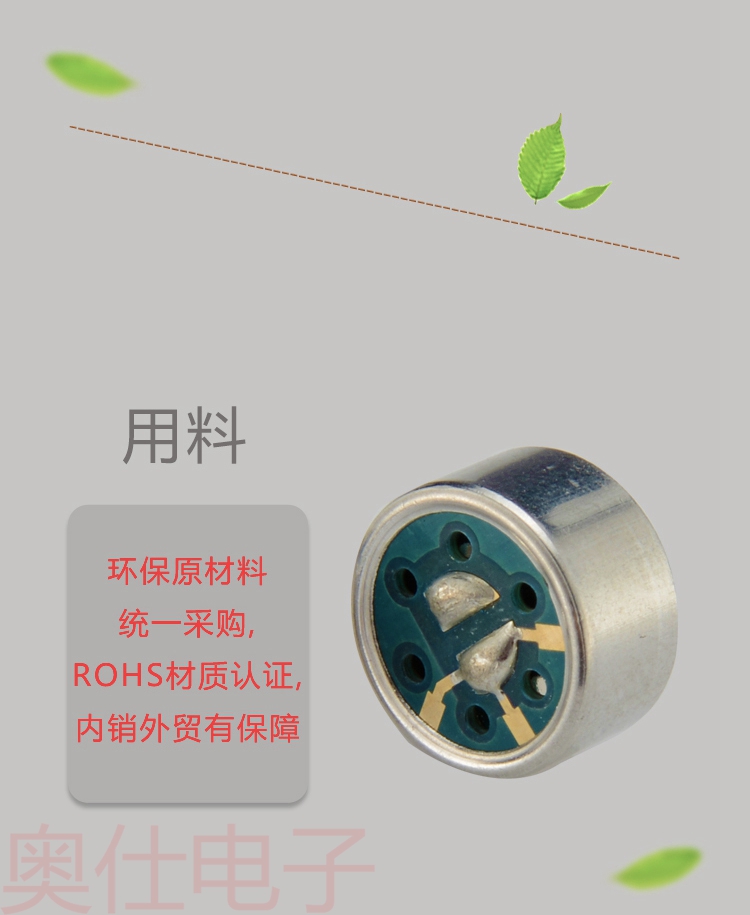 9750單指向電容駐極體咪頭,具有抗干擾,抗噪聲的特性,咪頭和原材料都具有環保資質