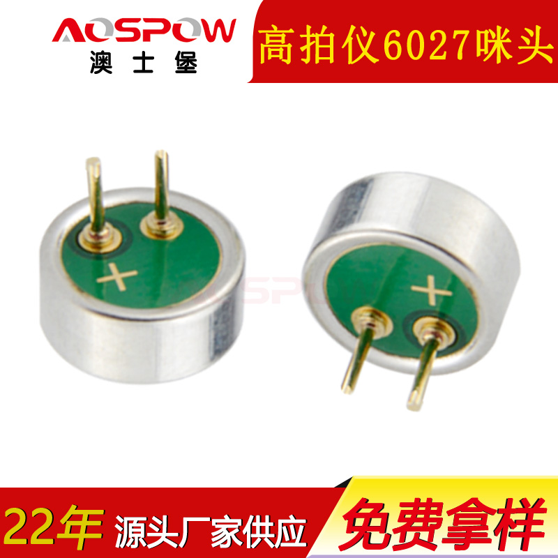 澳士堡降噪咪頭廠家專業生產的6027咪頭是一款全指向的插針駐極體咪頭,主要特點為抗干擾,降噪性能強,內置雙電容,采用環保原材料,國際權威機構ROSH材質認證,主要應用在:藍牙耳機、車載藍牙、高拍儀、藍牙音箱、智能手表、對講機等產品領域。