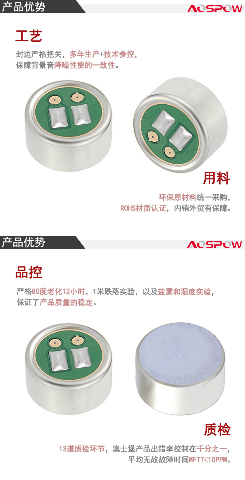 澳士堡降噪咪頭廠家供應IP67級防水咪頭、高靈敏防水咪芯、領夾麥用咪頭,采用韓國RF管芯定制生產、質量穩定可靠,咪頭采用美國進口的防水網,防水效果達到IP67級別,適用于對防水有高要求的拾音產品。