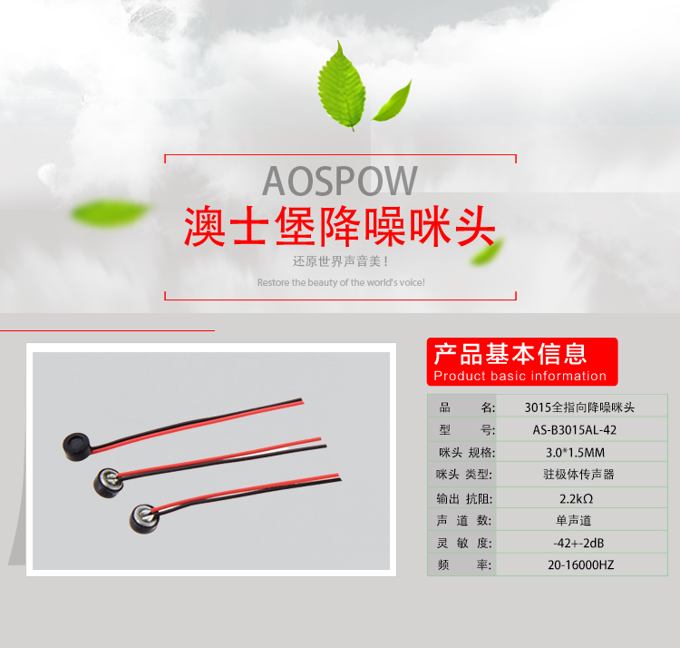 澳士堡咪頭工廠供應藍牙耳機用咪頭,3mm全指向小咪芯,3015焊線咪頭,雙電容抗干擾采用韓國進口管芯定制生產,3mm小體積咪芯適用于藍牙耳機等產品使用。