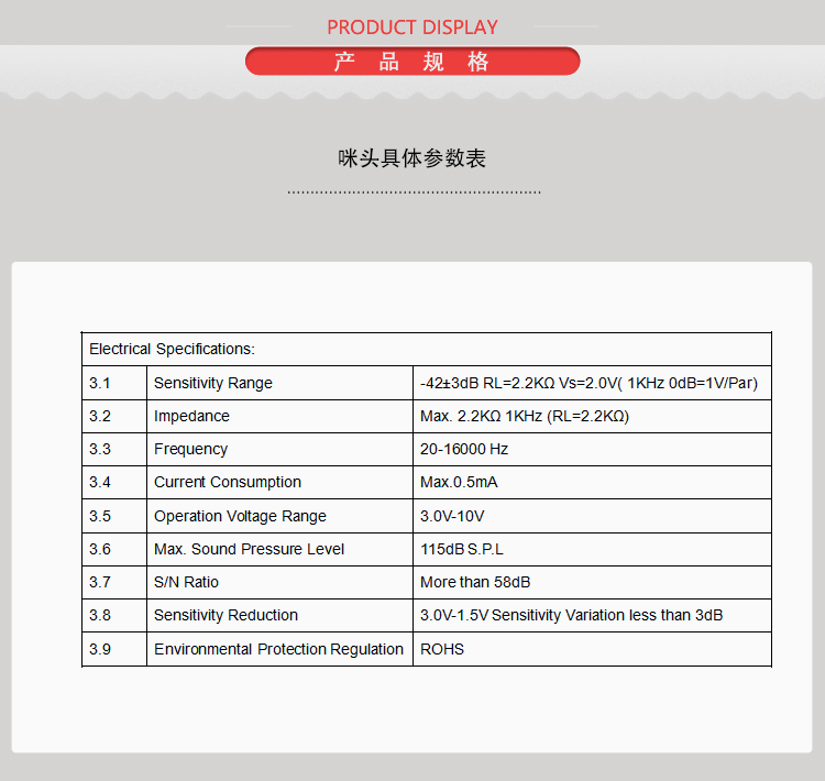 型號:AS-B3015AL-42類型:駐極體傳聲器(咪頭)聲道數:單聲道信噪比:58dB靈敏度:-42±2dB輸出阻抗:2.2KΩ(歐姆)規格尺寸:3.0*1.5(mm)頻率響應:20-16000HZ消耗電流:500 μA最大聲壓級:100dB