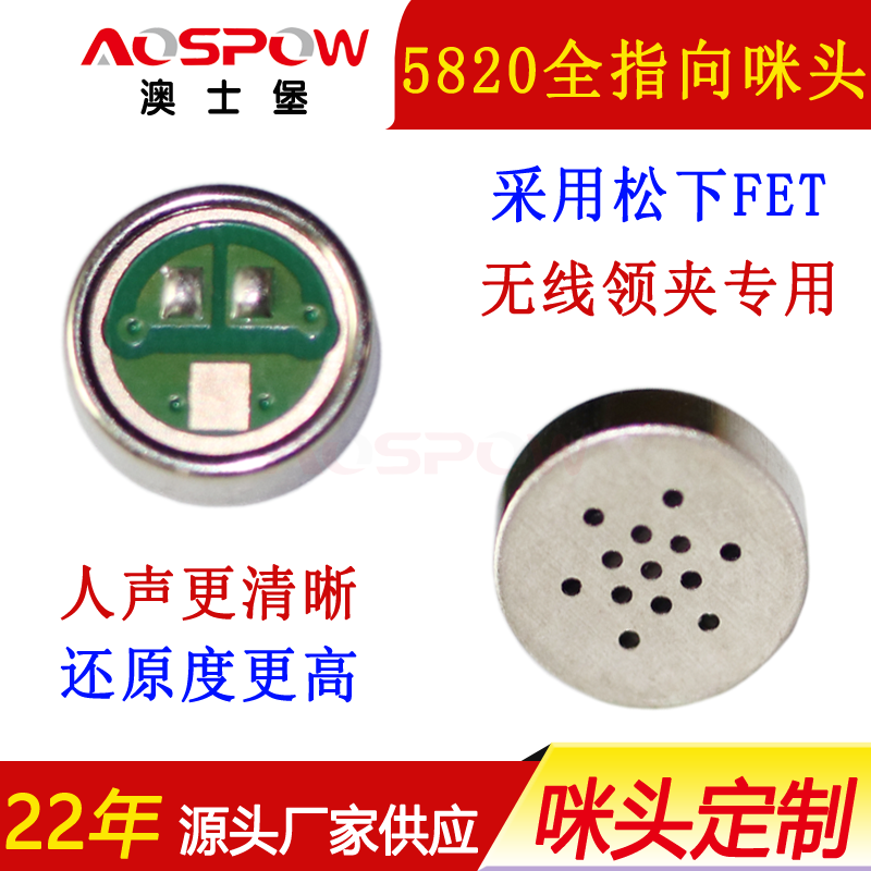 澳士堡降噪咪頭工廠定制2021年新款小方塊無線領夾用咪頭,采用松下管芯具有抗干擾源極輸出等特點,5820全指向咪芯適用于無線領夾麥克風,直播麥克風咪頭、視頻會議麥克風等產品領域。